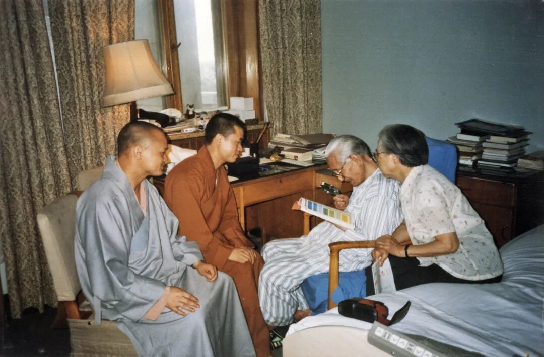 1999年在北京陪净因法师到医院看望赵朴老,与陈邦织夫人等一起