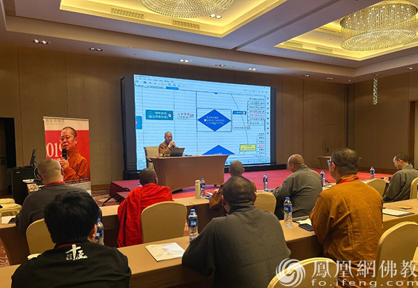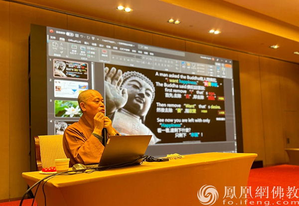 2023年5月,净因法师在凤凰网佛教文化·十愿网通讯员厦门交流营上做内容分享