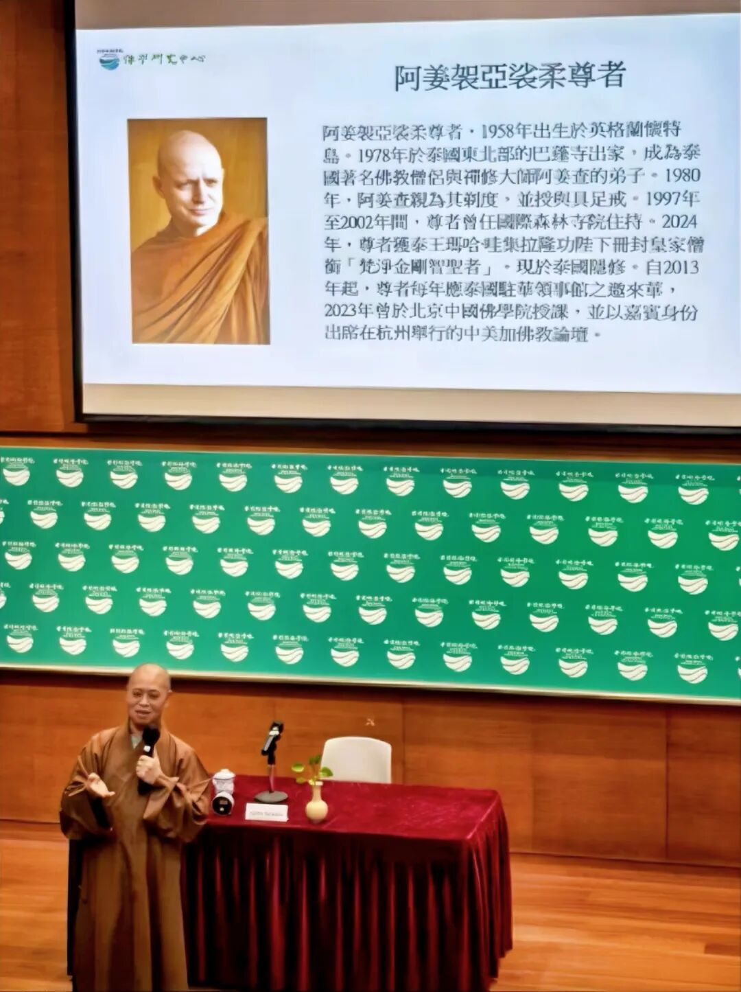 与师最后一面,是在阿姜袈亞娑柔(阿姜查弟子)讲座现场。师以流利英语致辞,言辞间兼具学术严谨与僧者慈悲,思维如奔涌江河,从佛典到现代学术,从东方智慧到西方哲思,纵横捭阖,妙语珠玑。我坐于台下,竭力追随思路,唯恐稍一松懈,便错失慧光。那一刻,我深切体悟“静水流深”之真谛:师之学识修为,如深海沉静,表面波澜不惊,内里藏万千气象;其言语如利刃精准,剖开表象,直抵核心。