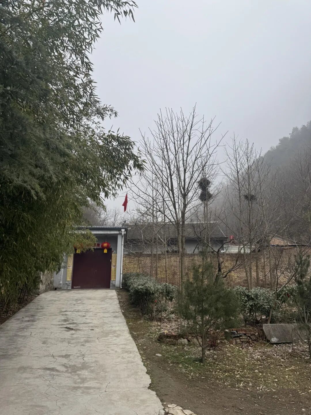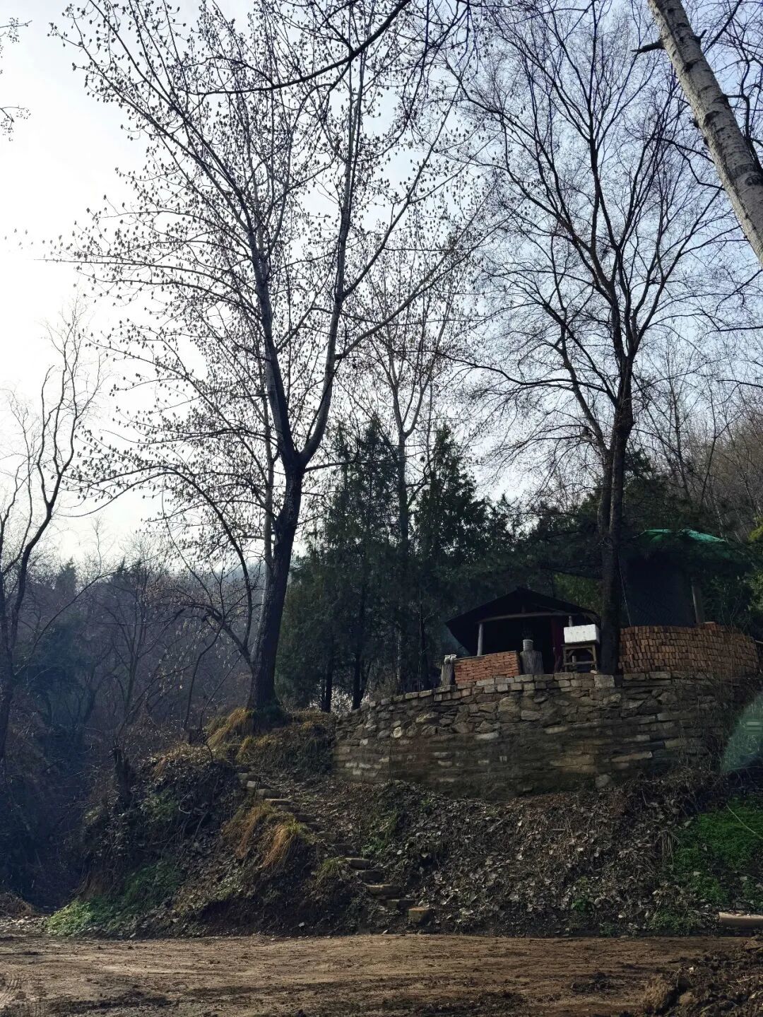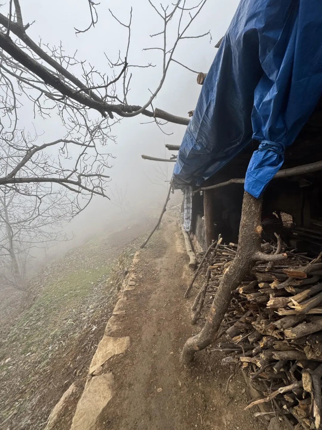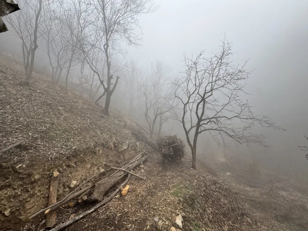 初到净业茅棚,已是夜幕时分,世广师驱车载我入山,道路曲折而狭,又逢浓雾弥漫、四野无灯,愈发辨不清来路。只依稀记得汽车回旋盘绕,自峪口渐次攀升,忽地由年久失修的水泥路转入原生土路,颠簸愈甚,忍耐良久,方才抵达。