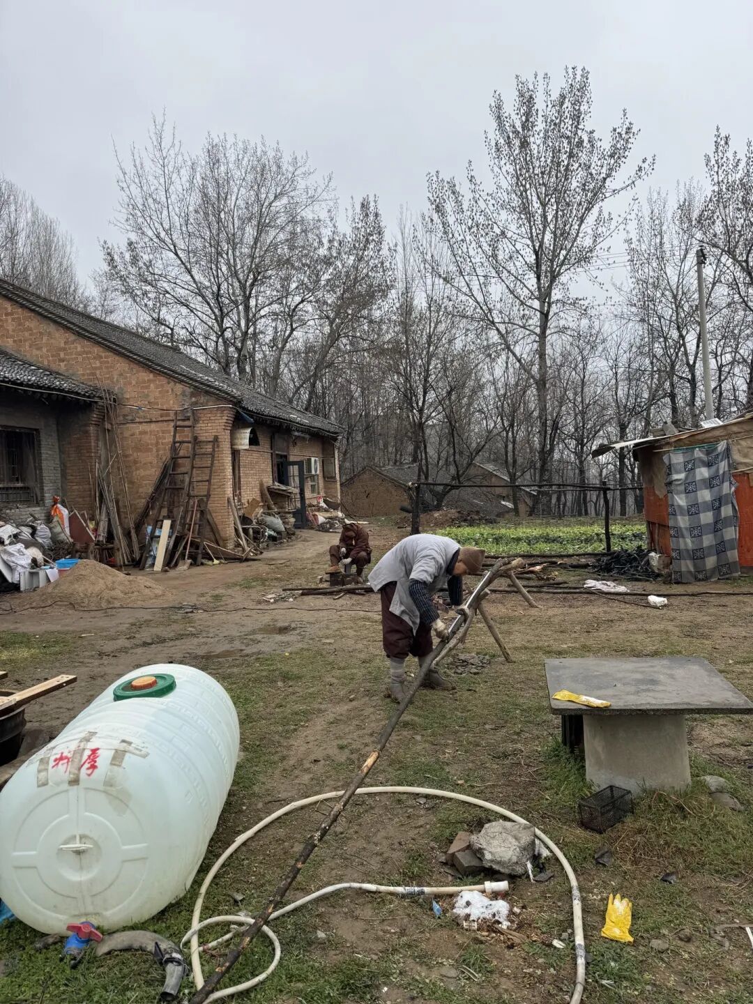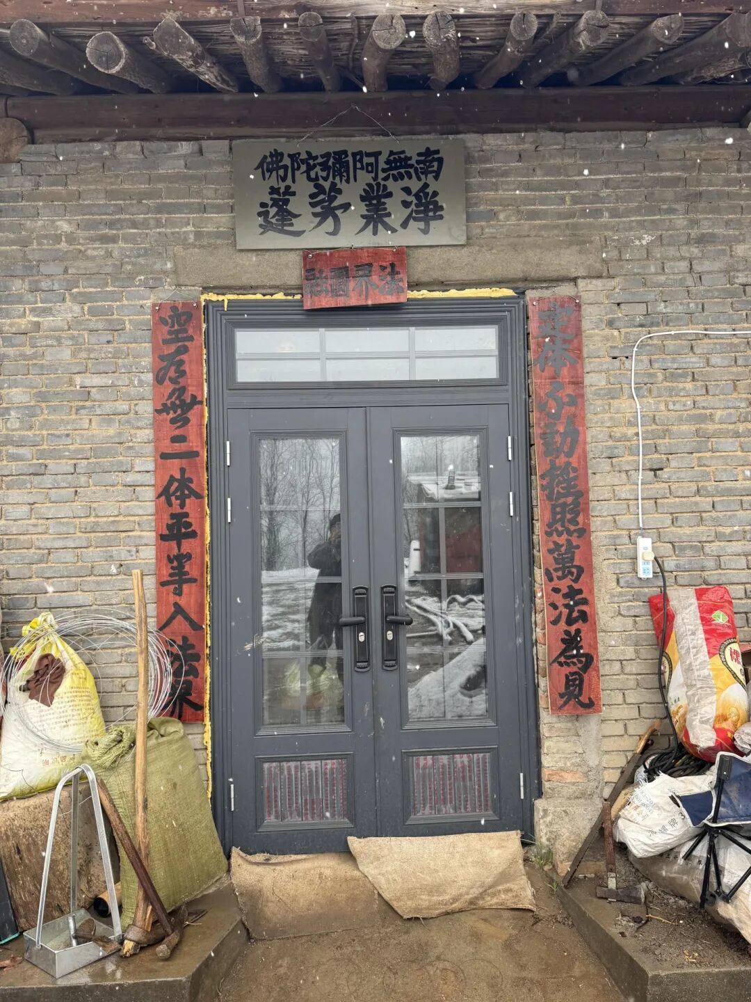 一则,老和尚有着自己坚持多年的、以打坐为主旋律的生活节奏,我至今仍不清楚他的具体打坐作息,只记得每日除早、午斋围桌过堂外,老和尚多半独处独行:他佝偻着背,拄杖缓步,凌晨四五点,我尚在睡梦中,已隐约听见拐杖点地的哒哒声;他偶尔到屋前空地转圈,至傍晚,则回屋内独自烧炕。天气晴好时,老和尚会在前院劳作,如备柴、修锄头等农具之类……或因连日雨雾,农事寥寥,老和尚几乎足不出户,终日以坐为常,日日如是。