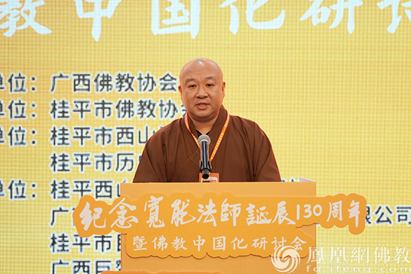 编者按:2025年12月9日,纪念宽能法师诞辰130周年暨佛教中国化研讨会在广西桂平举行。来自全国各地的佛教界人士、专家学者、护法居士及社会各界代表齐聚一堂,共同缅怀一代高僧宽能法师的深湛德行与巍巍功绩。广西佛教协会会长、桂平龙华古寺住持湛空法师出席活动并在开幕式上致辞,凤凰网佛教文化摘录编发湛空法师致辞如下: