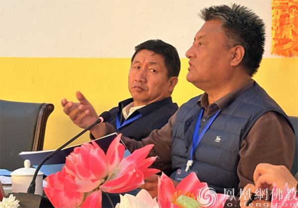 研讨会上,循化县人大常委会主任侃卓才让、班禅因明学院院长噶尔哇·阿旺桑波分别致辞。