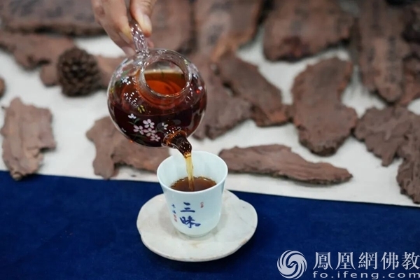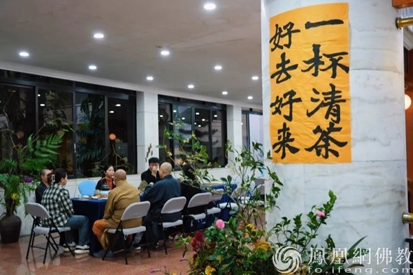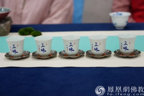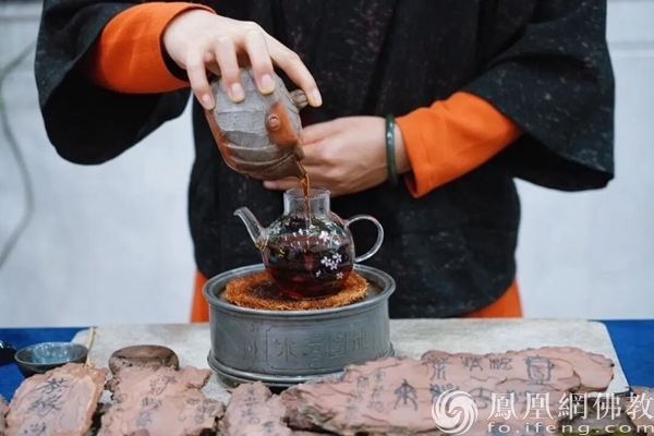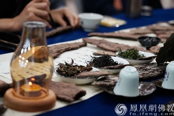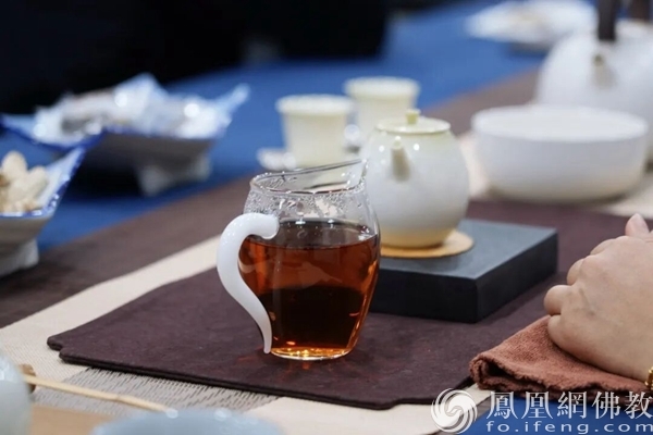 即今,一盏清茶,虔敬祖师,法乳深恩,山高水长;十方来聚,细品禅味,心灯相续,德馨益远。