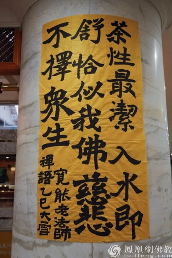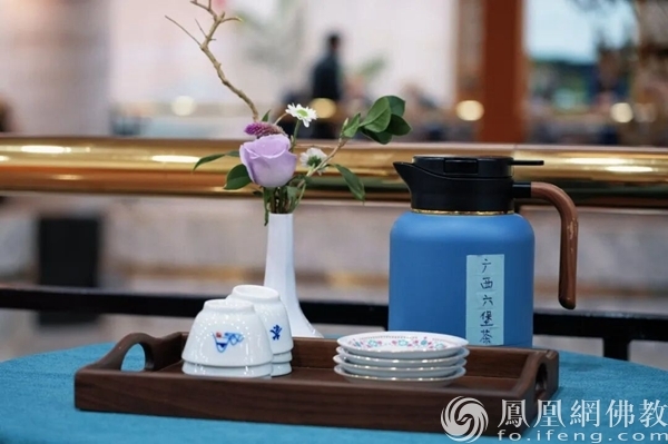 “茶润十方”,茶是实物,是媒介,更是象征,代表着禅门“吃茶去”的日常修行,是静心、明性、悟道的载体;润的不仅是喉吻,更是心田,如春雨润物,细腻无声;如清泉流淌,涤荡尘垢。这一盏茶,源自宽能法师的愿力,众生当以这一盏清茶为媒,将祖师的智慧与慈悲如甘霖般普施于法界众生,滋润每一位有缘人的心田,带来宁静与祥和。