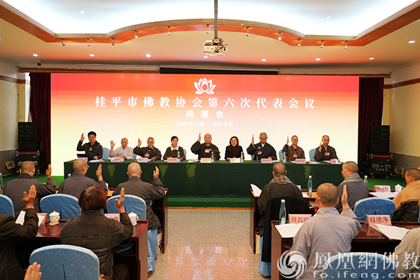 2025年12月10日,桂平市佛教协会第六次代表会议在广西桂平召开。桂平市委统战部常务副部长蓝赞,桂平市委统战部部务委员、民宗局局长陈宇杏,桂平市委统战部三级主任科员伍燕燕等领导嘉宾出席会议。来自全市各寺院(单位)推选的61名代表参加了会议。